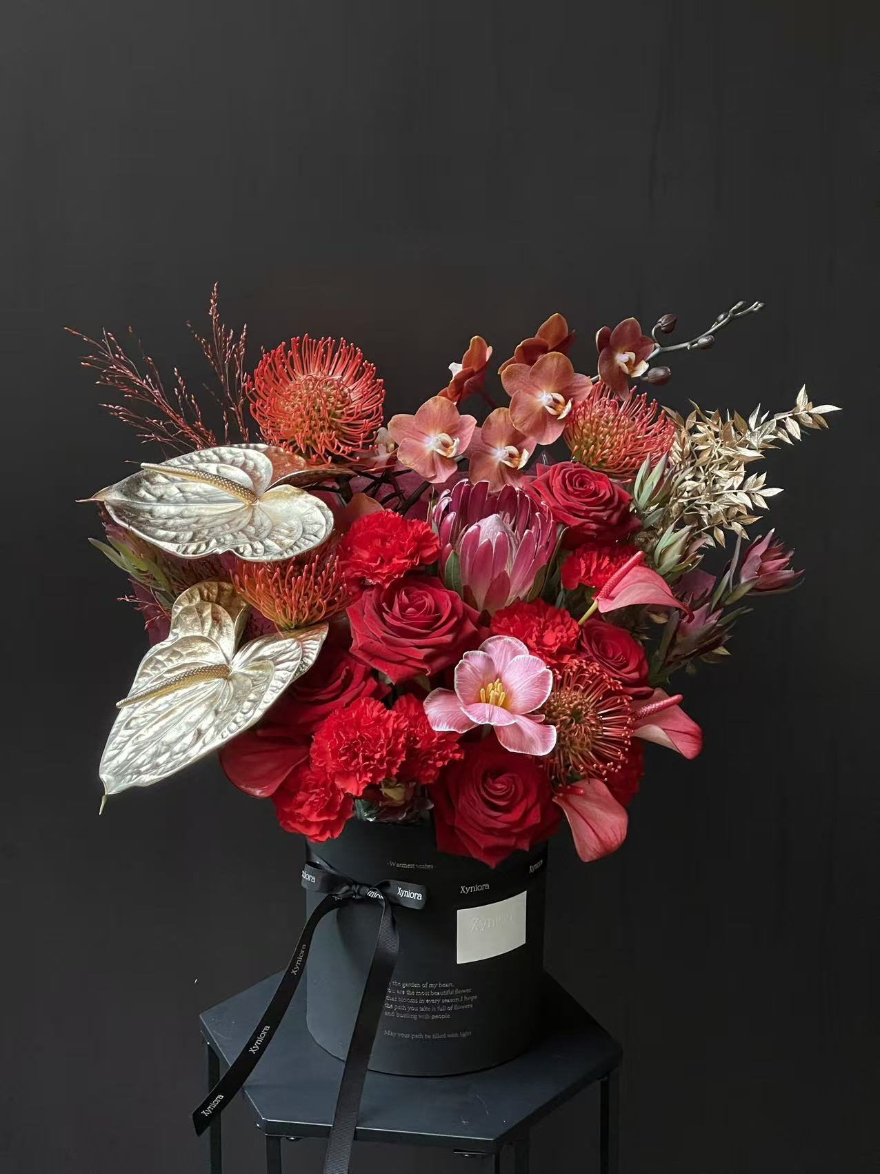 Ecuador roses • Grand size • Red + gold statement mix